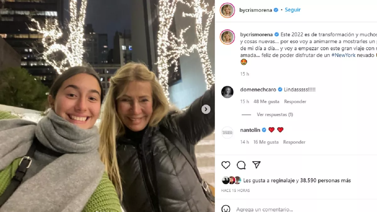 "Este 2022 es de transformación y muchos cambios y cosas nuevas… por eso voy a animarme a mostrarles un poco más de mi día a día… y voy a empezar con este gran viaje con mi nieta amada… feliz de poder disfrutar de un #NewYork nevado", expresó Cris Morena con una serie de postales desde el invierno de la Gran Manzana acompañada por su nieta.