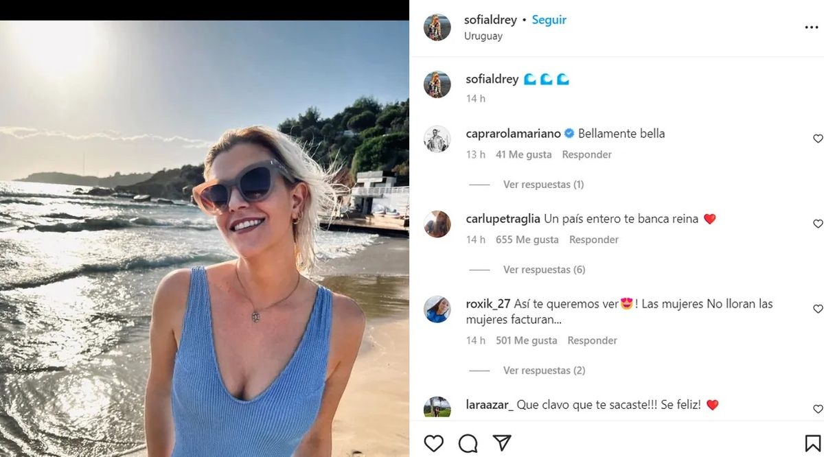 En su cuenta de Instagram, Sofía Aldrey compartió una foto, que retrata que se encuentra muy tranquila, pese a la tormenta que vive por la separación.