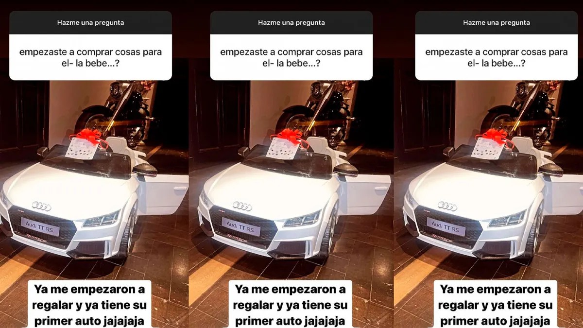 "¿Empezaste a comprar cosas para el/la bebé?", consultó una seguidora y Barby respondió: “Ya me empezaron a regalar, y ya tiene su primer auto jajaja", escribió junto a la foto.