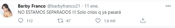 Barby Franco reconoció la crisis con Fernando Burlando: "Desde Navidad que no nos vemos"