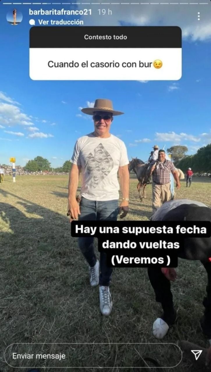 "¿Cuándo el casamiento con Burlando?", le consultó un follower bien curioso e intrigado por el futuro de la pareja. Sin dar vueltas, ella le respondió: "Hay una supuesta fecha dando vueltas... Veremos".