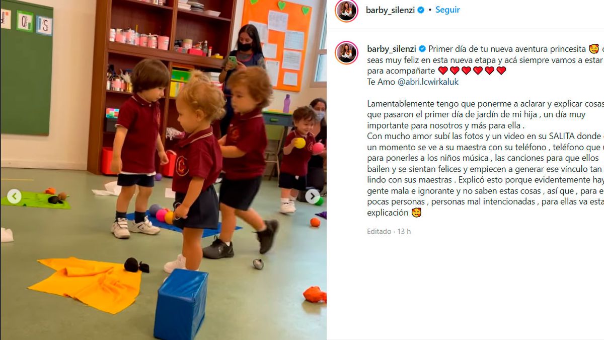 Pero Barby explicó lo sucedido: “Lamentablemente tengo que ponerme a aclarar y explicar cosas que pasaron el primer día de jardín de mi hija , un día muy importante para nosotros y más para ella”, comenzó diciendo.