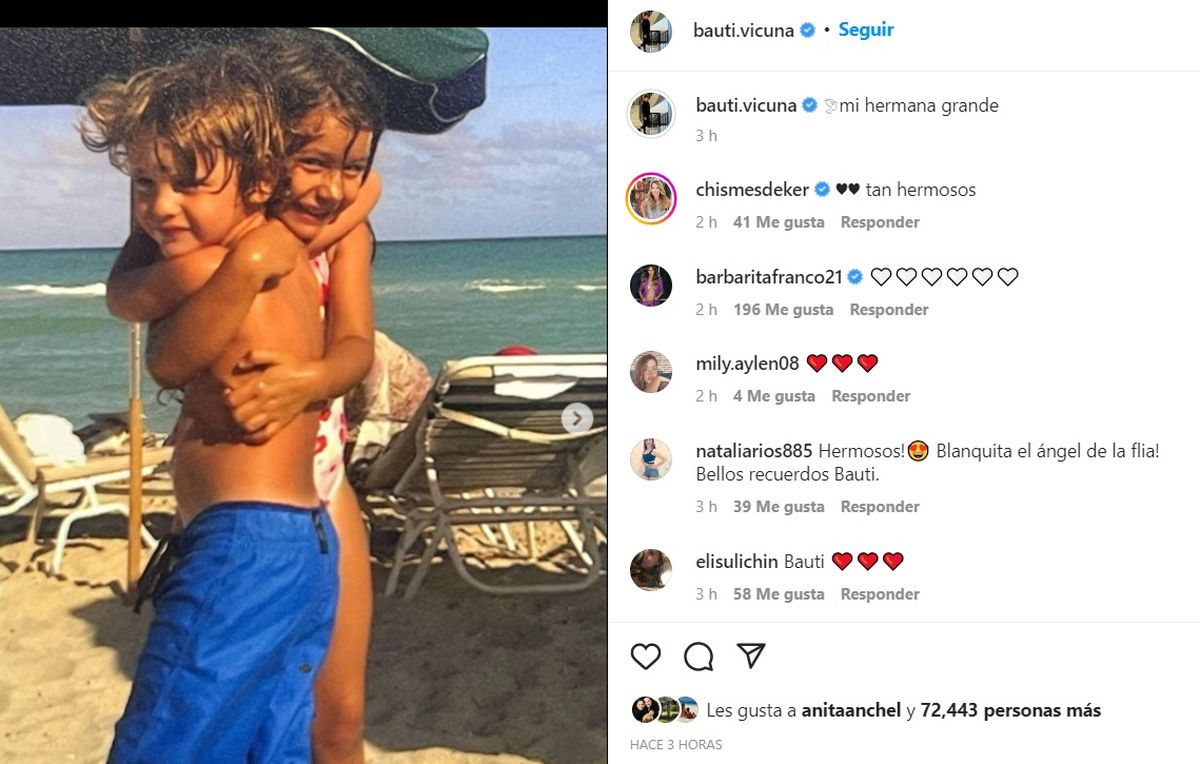 Como cada 8 de septiembre, el recuerdo de Blanca se hace presente entre Pampita, Benjamín Vicuña y toda su familia. Esta vez, quien le dedicó un emotivo posteo con fotos inéditas, y una dulce dedicatoria fue su hermano mayor, Bautista.