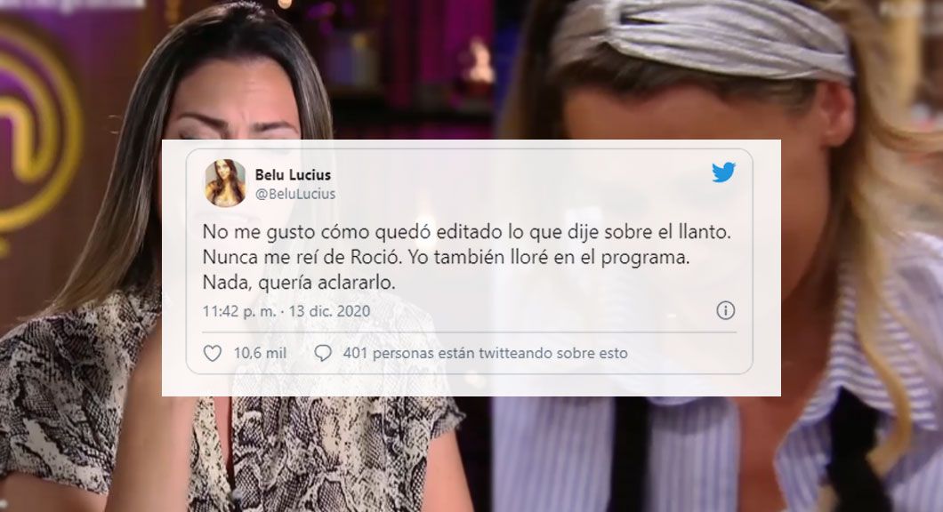 Rápidamente comenzaron a criticarla en las redes, pero Belu aseguró que no se burlo de la rubia sino que fue una mala jugada del programa "No me gustó cómo quedó editado lo que dije sobre el llanto. Nunca me reí de Roció. Yo también lloré en el programa. Nada, quería aclararlo", escribió la influencer en sus redes.