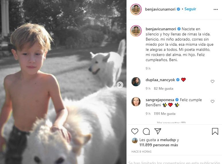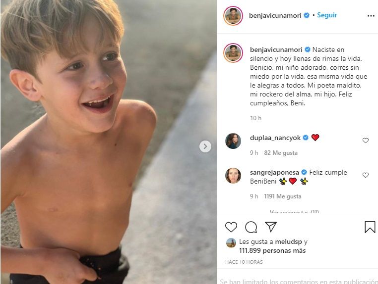 "Naciste en silencio y hoy llenas de rimas la vida. Benicio, mi niño adorado, corres sin miedo por la vida, esa misma vida que le alegras a todos", indicó Vicuña.