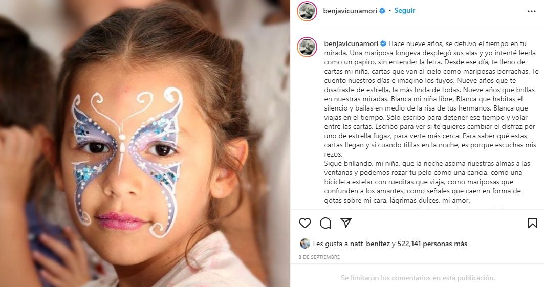 Benjamín Vicuña se refirió al duelo por la muerte de su hija Blanca Vicuña, trágico episodio que marcó para siempre su vida y la de Pampita, ocurrido en septiembre de 2012.