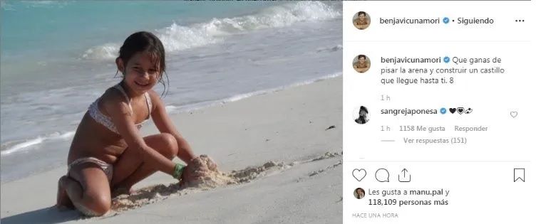 Quien apoyó su sentido posteo fue "La China" Suárez, actual pareja de Vicuña y madre de su hija Magnolia.
