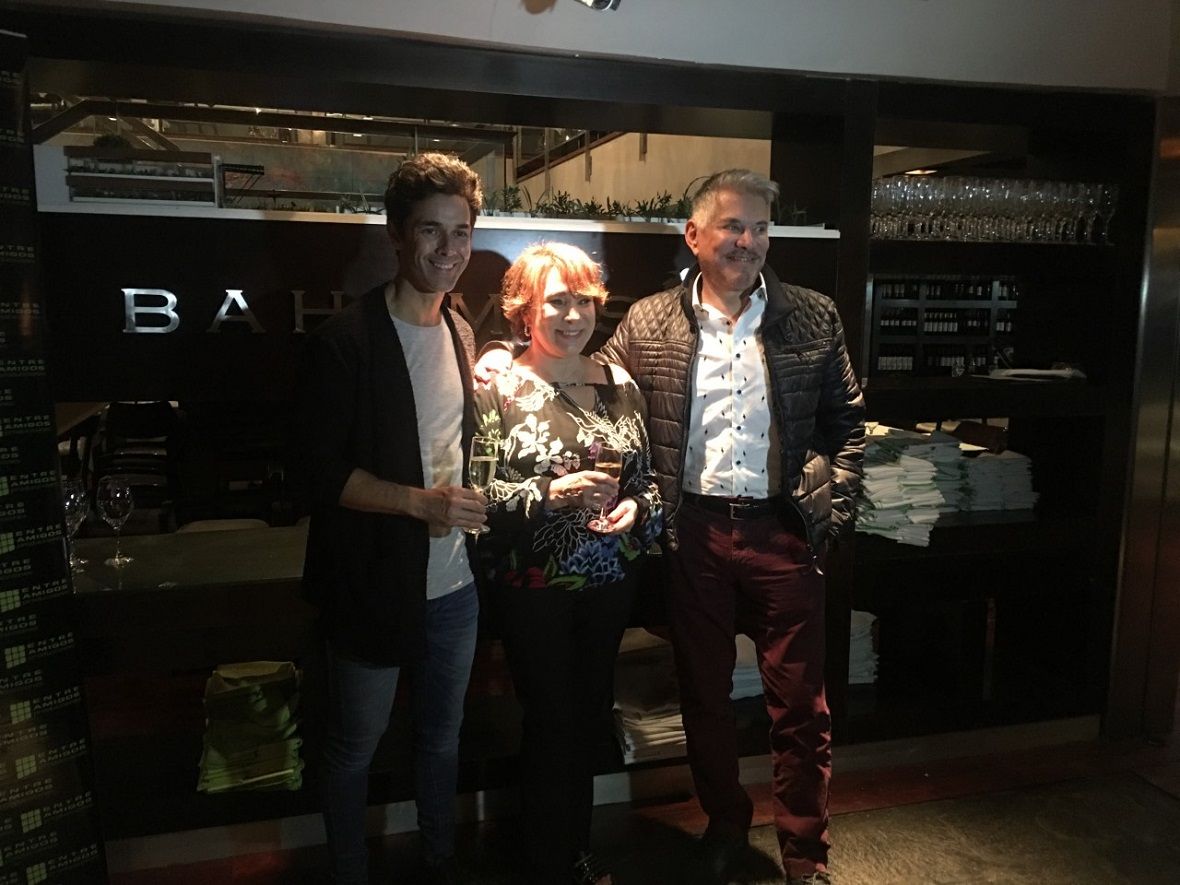 Betiana Blum, Arnaldo André y Mariano Martínez junto a todo el equipo técnico se divirtieron y brindaron con champagne entre risas y anécdotas. Flor Torrente que también es una de las protagonistas de la obra, estuvo ausente con aviso porque tenía un compromiso personal.