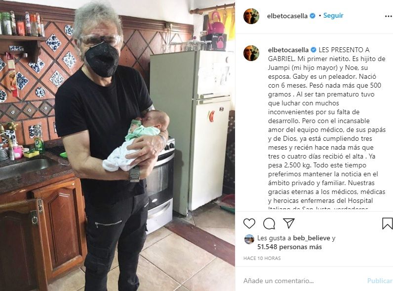 Beto Casella presentó a Gabriel, su primer nieto, con un emotivo posteo en Instagram en la noche de martes.