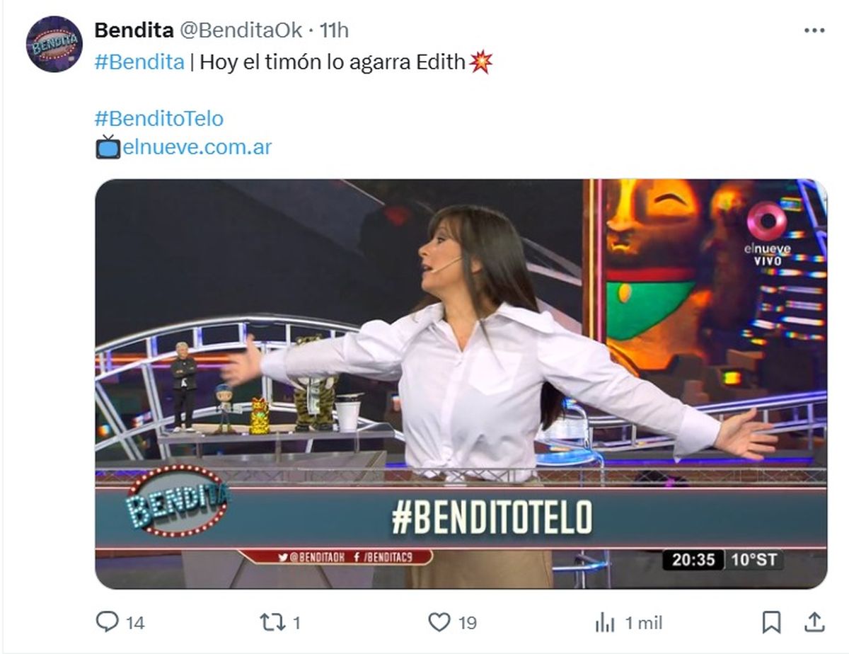 edith hermida al frente de bendita ante la ausencia de beto casella por su furia