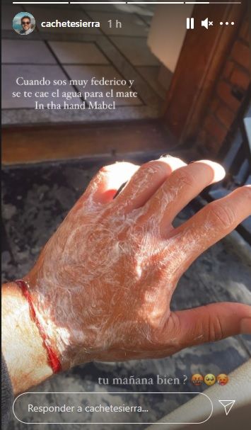En la imagen se puede ver su mano un tanto dañada después del incidente doméstico con el agua caliente.