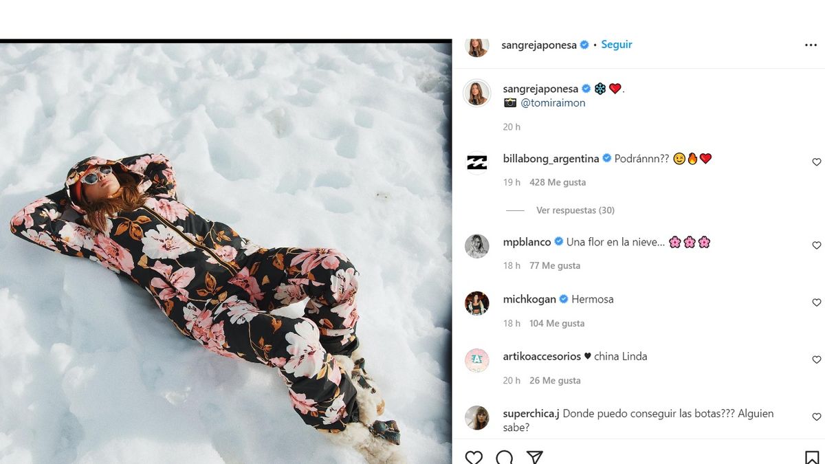 Suárez musicalizó el material con una canción bien romántica y además compartió unas fotos de la producción que hizo sobre la nieve.
