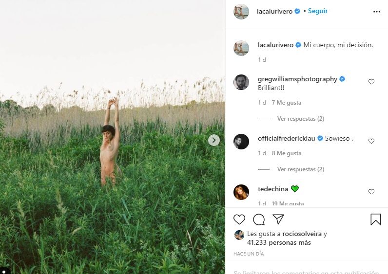 Lo cierto es que para cerrar el 2020, "Dignity" se desnudó entre la vegetación y compartió la postal en Instagram: "Mi cuerpo, mi decisión", precisó en el posteo junto a otras imágenes.