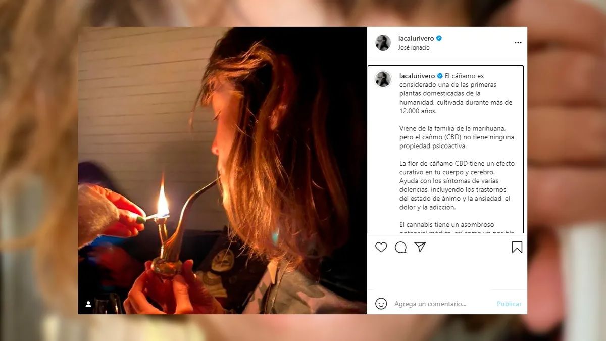 Calu Rivero se mostró fumando marihuana en las redes sociales. La actriz compartió una imagen en su cuenta de Instagram, en la que está prendiendo una pipa con cannabis. En la descripción del posteo destacó los beneficios de su consumo.