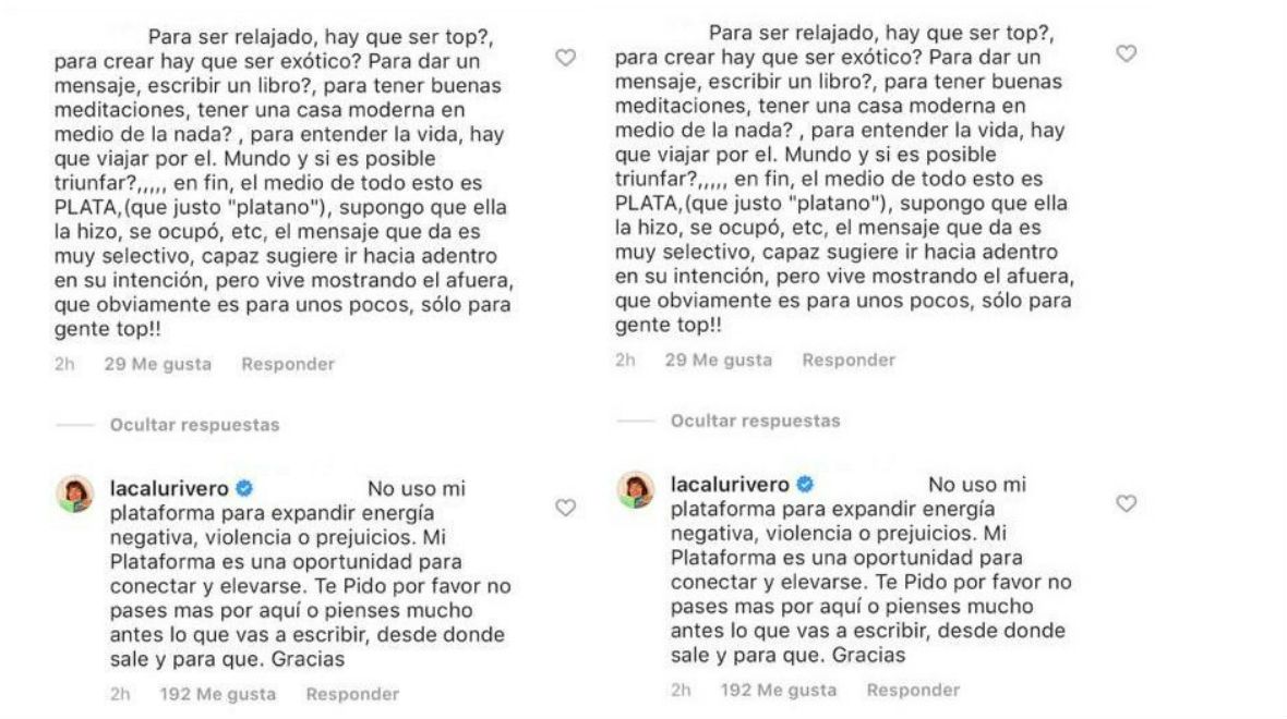 Y cerró: "Te pido por favor no pases más por aquí o pienses mucho antes lo que vas a escribir, desde dónde sale y para qué. Gracias".