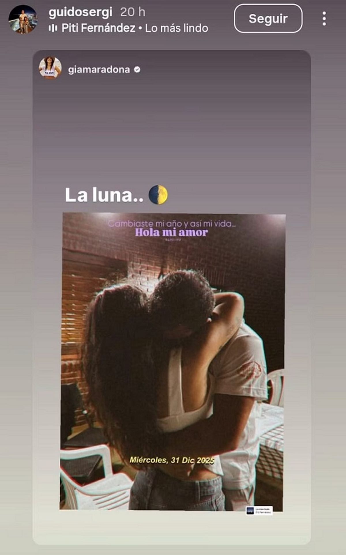“Cambiaste mi año y así mi vida… Hola mi amor”, describió Giannina muy enamorada en la romántica imagen. Por su parte, él decidió replicar desde su cuenta en redes ese momento y agregó: "La luna...".