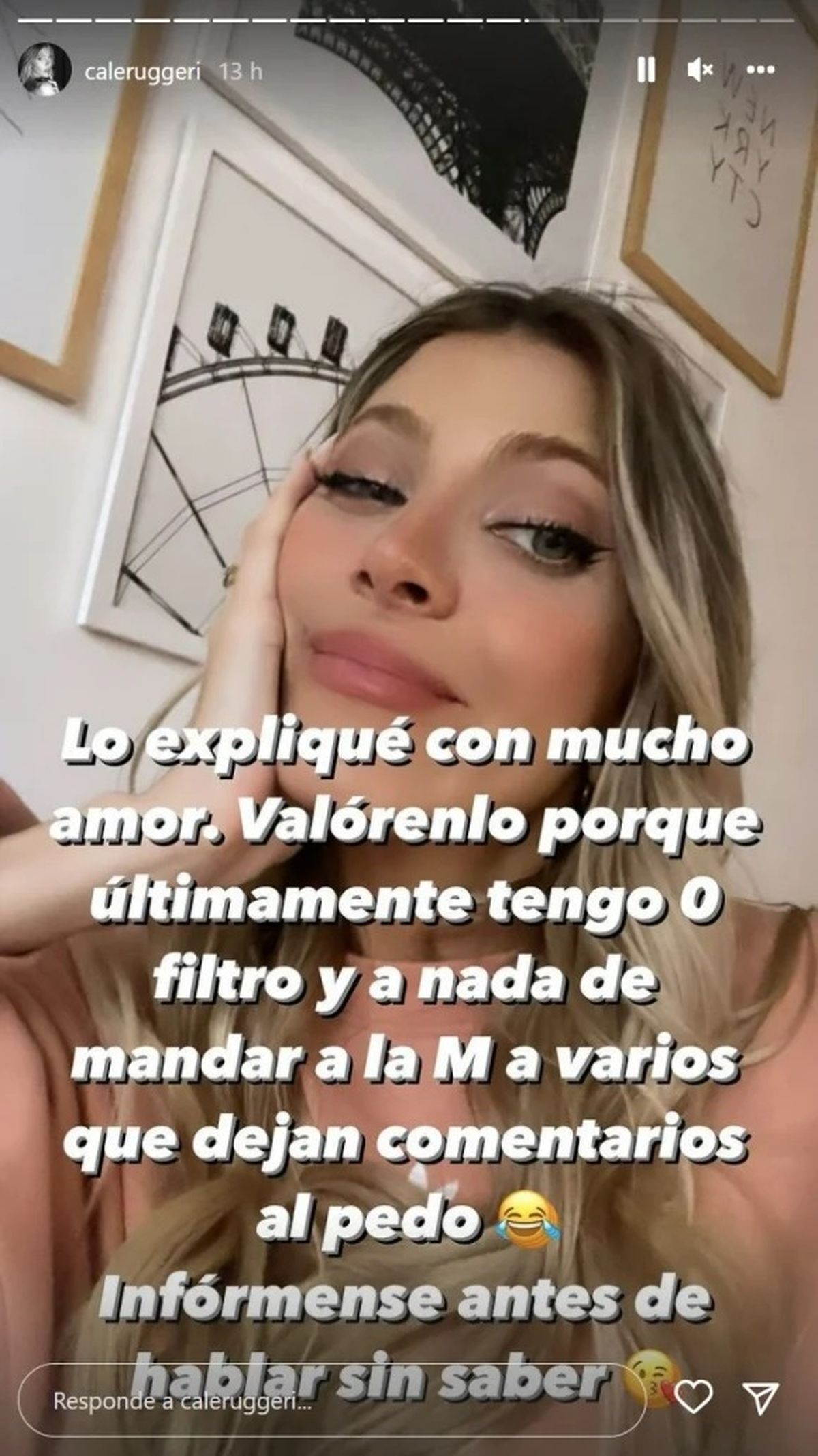 "Cada una tiene un embarazo distinto y siempre les digo que cada una tiene que preguntarle a su médico. Infórmense antes de hablar sin saber", finalizó Cande haciendo especial hincapié en que su descargo fue con "amor", aunque últimamente está con "cero filtro".