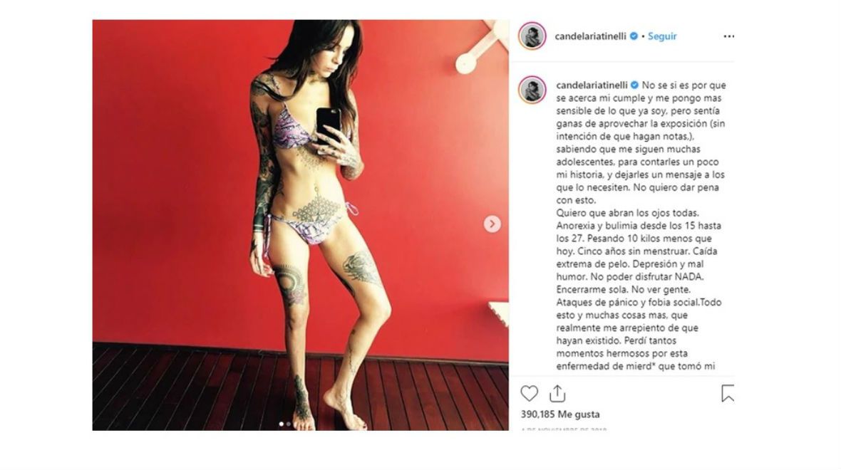 Candelaria Tinelli se pronunció a partir del mensaje de una seguidora sobre los trastornos alimenticios, que le dijo que su lucha daba "esperanza".