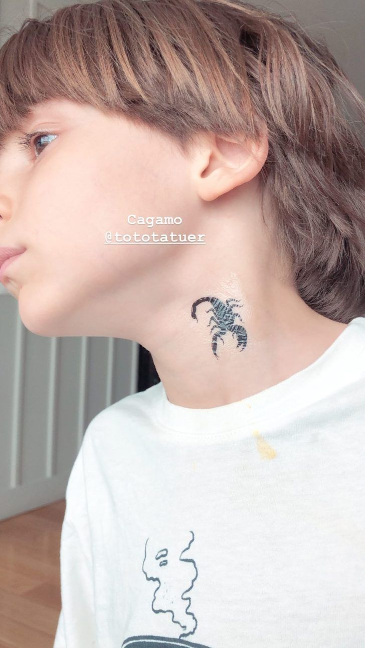 El niño se hizo un escorpión no permanente en la zona del cuello, por lo que lleva a pensar que tal vez Candelaria se haya hecho el mismo estilo de tatuaje.