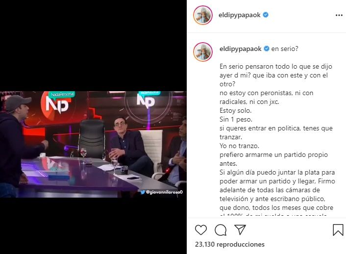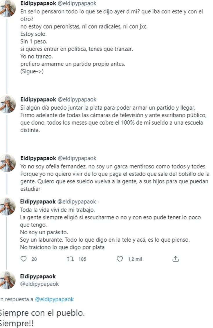 "El Dipy" David Adrián Martínez enfrentó este domingo el rumor que comenzó a circular con fuerza el sábado desde las redes donde decía que iba integrar la lista de Facundo Manes como candidato a concejal de La Matanza de cara a las elecciones legislativas de septiembre de este año.