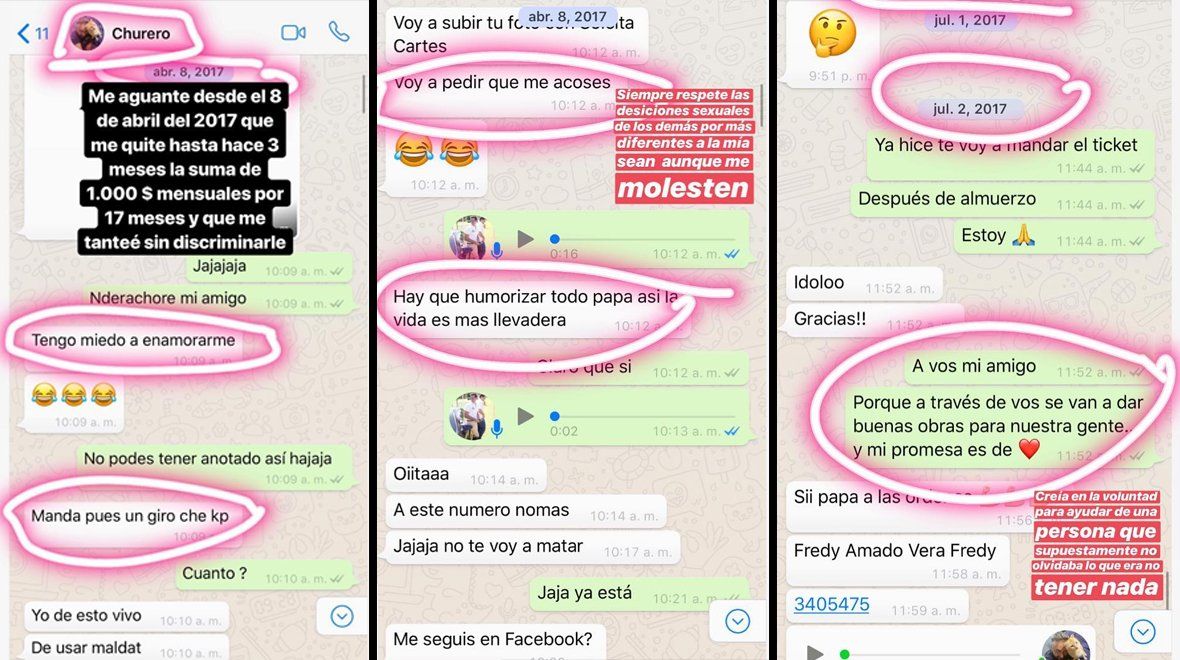 En respuesta el joven político, sobrino de Horacio Cartes y hermano de Lorena, publicó una serie de screen shots donde denuncia haber sido chantajeado por el Churero durante más de un año.