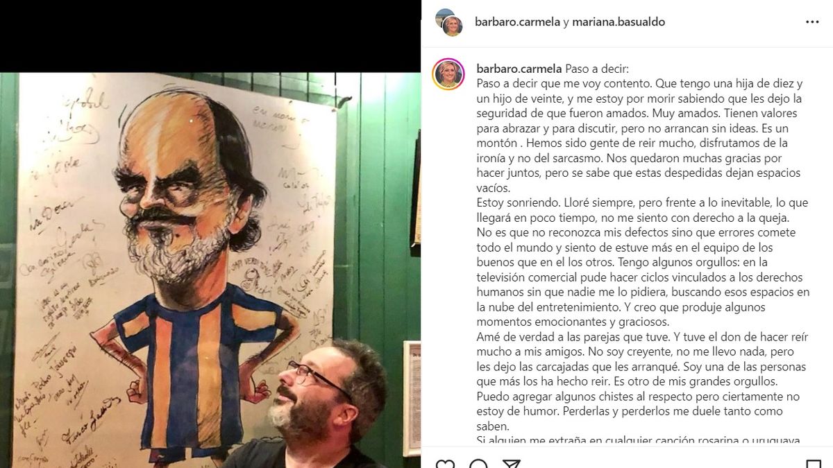 A continuación, publicaron las palabras de Rozín en primera persona: "Paso a decir que me voy contento. Que tengo una hija de diez y un hijo de veinte, y me estoy por morir sabiendo que les dejo la seguridad de que fueron amados. Muy amados. Tienen valores para abrazar y para discutir, pero no arrancan sin ideas. Es un montón. Hemos sido gente de reír mucho, disfrutamos de la ironía y no del sarcasmo. Nos quedaron muchas gracias por hacer juntos, pero se sabe que estas despedidas dejan espacios vacíos. Estoy sonriendo. Lloré siempre, pero frente a lo inevitable, lo que llegará en poco tiempo, no me siento con derecho a la queja", decía el comienzo del texto.