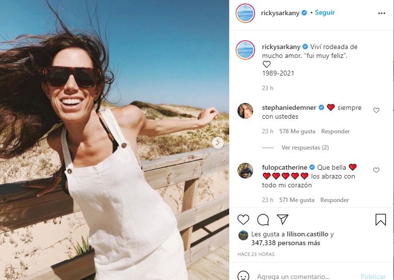 "Gracias por incorporar a la familia a Tomy, el hijo varón que siempre soñamos y por, junto a él, traer al mundo a Félix. Pintaste tu mundo de felicidad y amor. Repetías que tenias miles de sueños pero que preferías no tener expectativas... tu filosofía que te permitió disfrutar libremente de la vida. Siempre hiciste solo lo que tu corazón decía que te haría feliz", remarcó Sarkany.