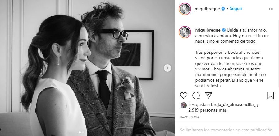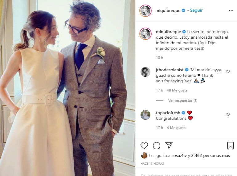 Y añadió enamorada: "Me ha casado con el hombre al que le podría escribir una lista interminable de cualidades maravillosas, pero vamos… que me he casado con la persona con el corazón más grande que he conocido en mi vida y de quien estoy absolutamente enamorada. Agradecida es poco".