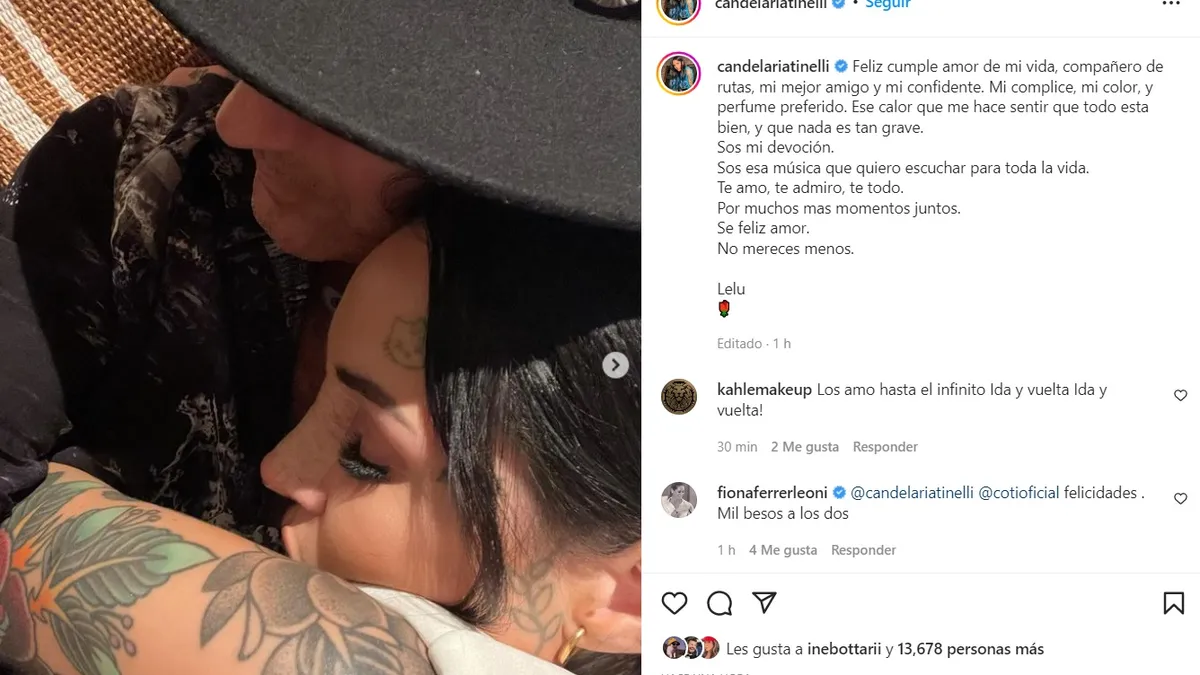 "Sos mi devoción. Sos esa música que quiero escuchar para toda la vida. Te amo, te admiro, te todo. Por muchos mas momentos juntos. Se feliz amor. No mereces menos. Lelu", cerró la hija de Marcelo Tinelli.