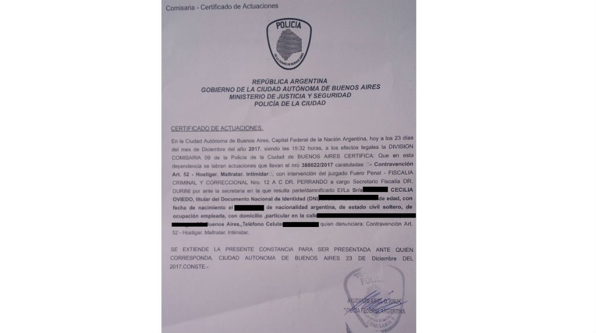 "Hace un mes hay una persona que anda dando vueltas por mi casa, sabe los horarios míos. La primera vez lo veo enfrente y no pasó nada. La segunda vez bajo del auto lo veo escondido atrás de un tacho de basura, se bajó los pantalones y se empezó a masturbar".