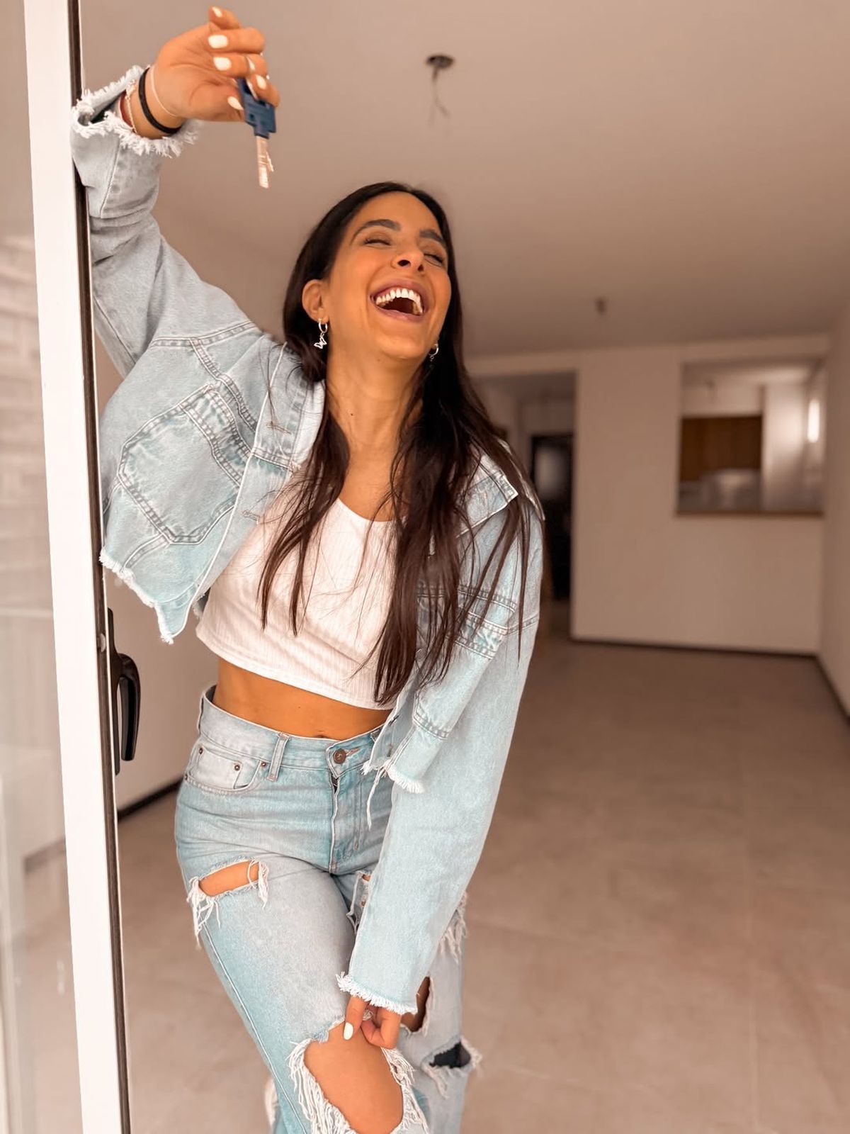 La artista celebró la adquisición de su primera casa compartiendo varias fotos de su nuevo hogar. Con la llave en mano y acompañada de su pareja en un tierno momento, expresó la emoción de concretar este gran paso en su vida.