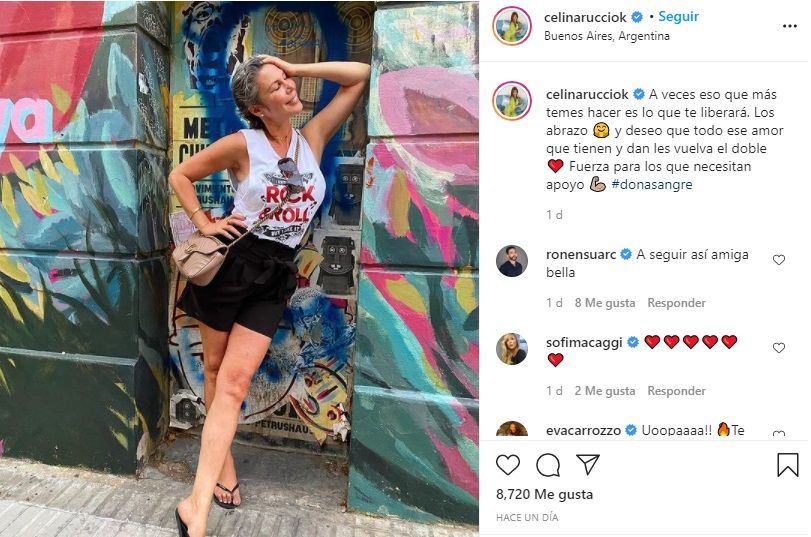 Por último, Celina añadió: "Ayer Salí a cenar con amigos, estábamos felices, celebrando la vida, nos ponemos a bailar y en un movimiento brusco se me salió la peluca, (que llevo por la quimio) me sentí tan vulnerable que no pude volver al lugar, ellos me decían que no era nada, pero yo sentí que no pude ocultar mas lo que me había pasando, por primera vez me había mostrado enferma a los ojos de los demás y toda esta coraza que vengo armando desde niña para poder sobrevivir en este mundo se me derrumbo en un segundo. Ya no quiero seguir así, y es por eso que hoy me libero. #donasangre".