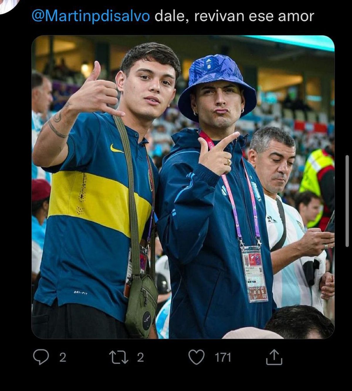 Fue ahí cuando sus seguidores empezaron a especular con que el mensaje fue dedicado a Martín Salvio por su look en los partidos de Argentina.