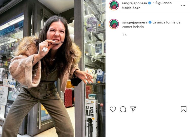 En tanto, en el segundo posteo compartió otro video paseando por las calles de una avenida madrileña con sus hijos menores en su cochecito, mientras Rufina los acompaña con su monopatín. Con gafas de sol color caramelo, la China Suárez camina muy relajada con una mano en el bolsillo y sonríe a cámara, entre altiva e irónica. Al tiempo que también hizo una tercera publicación donde se muestra de piernas abiertas con una galletita helada, asegurando "La única forma de comer helado".