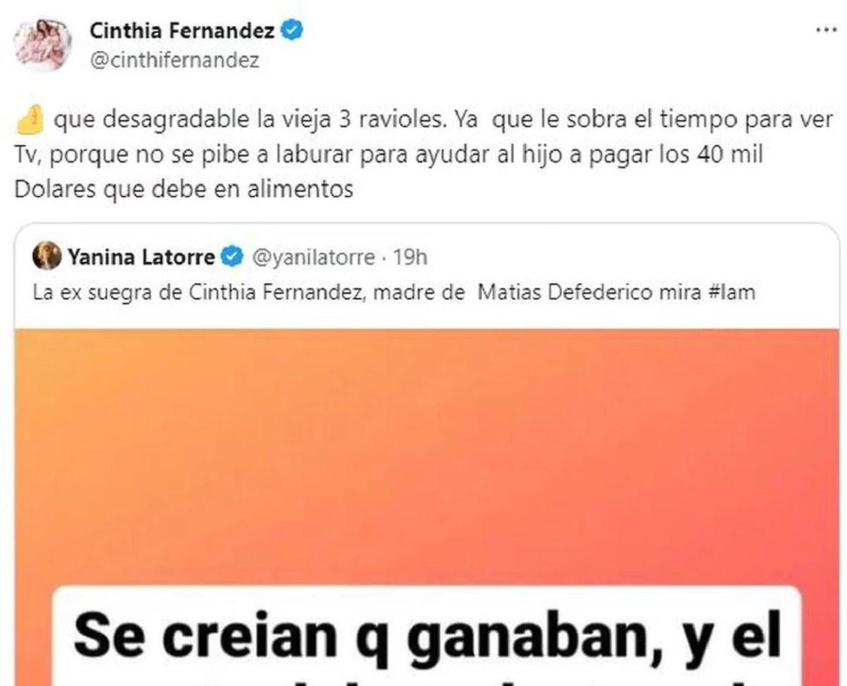 Tw Yanina Latorre sobre madre de Cinthia Fernández.jpg
