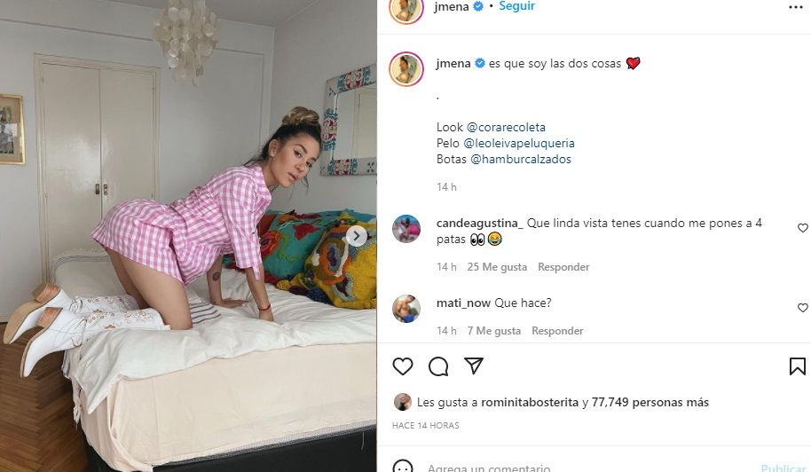 "Yo a mi chico le mando privado y también muestro a la popu para que vea", sostuvo la cantante. "Es que yo también muestro a la popu, pero no para que el otro vea que otro me pone like, me parece un montón", insistió Guillermina. "Que vean todos", cerró Jimena.