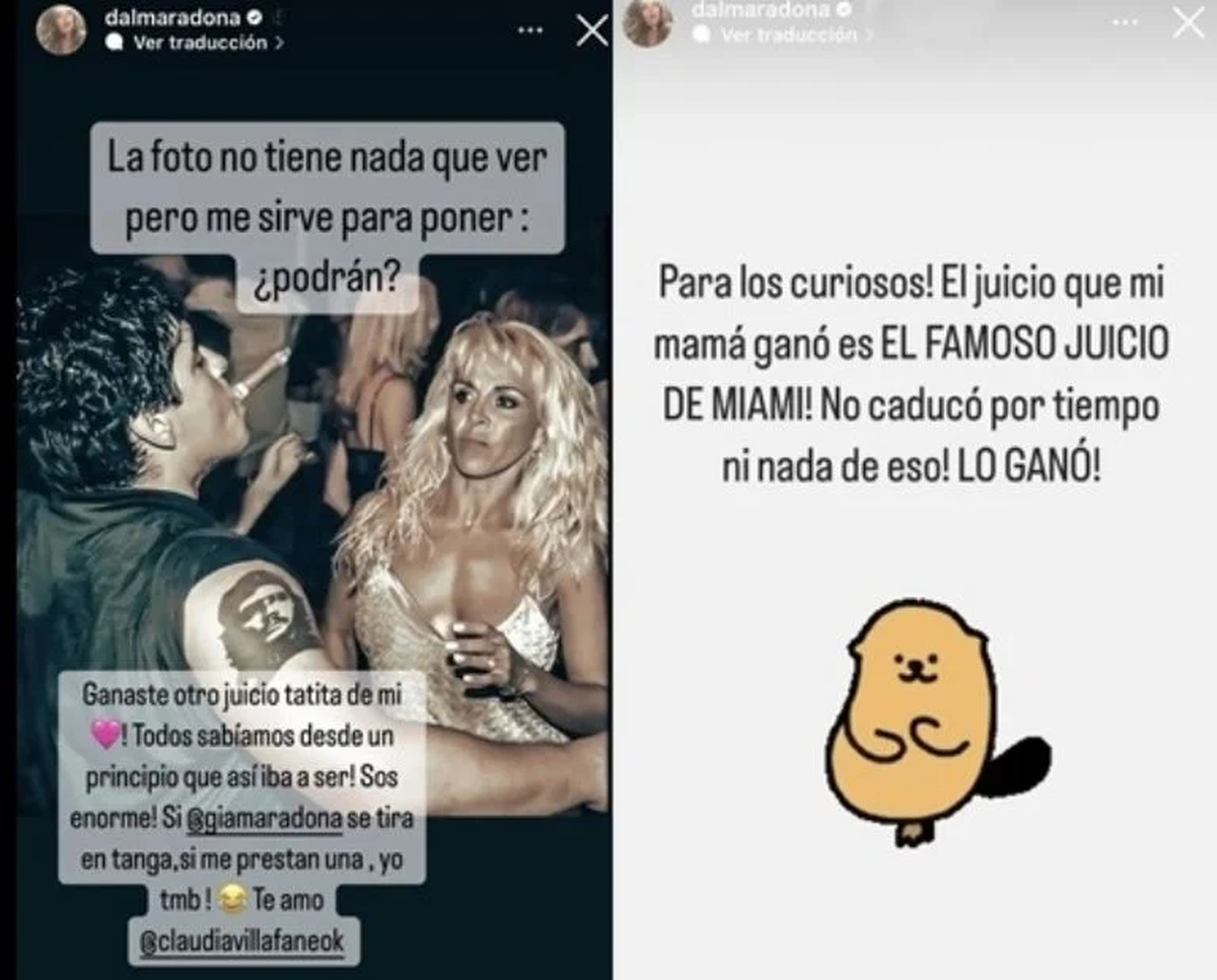 En un segundo posteo, Dalma explicó más. "Para los curiosos... el juicio que mi mamá ganó es el famoso juicio de Miami. No caducó por tiempo ni nada de eso. Lo ganó!", concluyó.