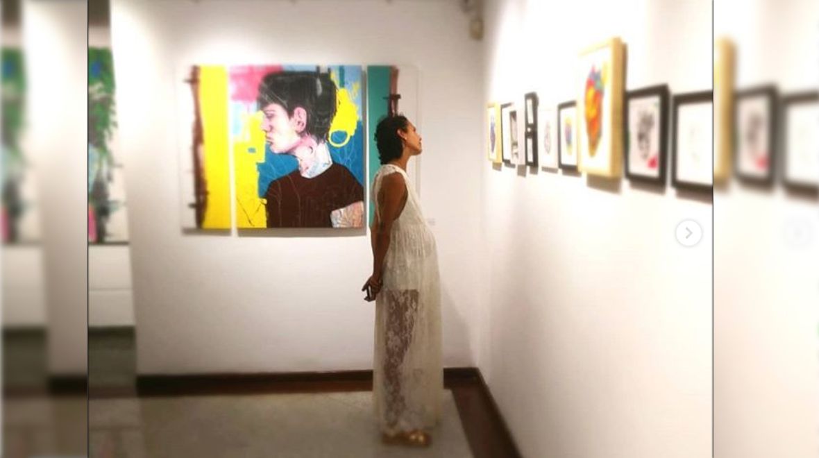 En una de sus salidas visitó una exposición de Guillermo Sanabria y el artista se encargó de publicar unas fotos en las que se aprecia el embarazo.