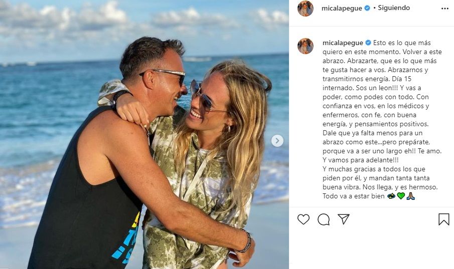 "Día 15 internado. ¡Sos un leon! Y vas a poder, como podés con todo. Con confianza en vos, en los médicos y enfermeros, con fe, con buena energía y pensamientos positivos. Dale que ya falta menos para un abrazo como este... Pero preparate, porque va a ser uno largo eh!! ! Te amo. Y vamos para adelante!!!", continuó, para cerrar el posteo con un agradecimiento "por tanta buena vibra". "Nos llega, y es hermoso. Todo va a estar bien", finalizó.