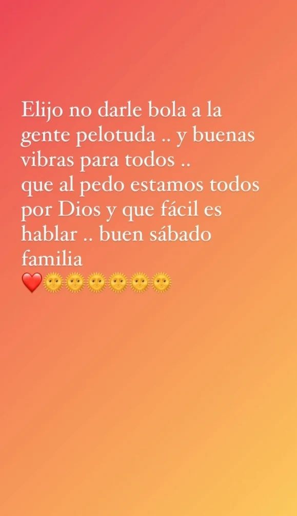"Elijo no darle bola a la gente pelotuda... Y buenas vibras para todos... Qué al pedo estamos todos por Dios y que fácil es hablar... Buen sábado, familia”, sentenció contundente El Polaco.