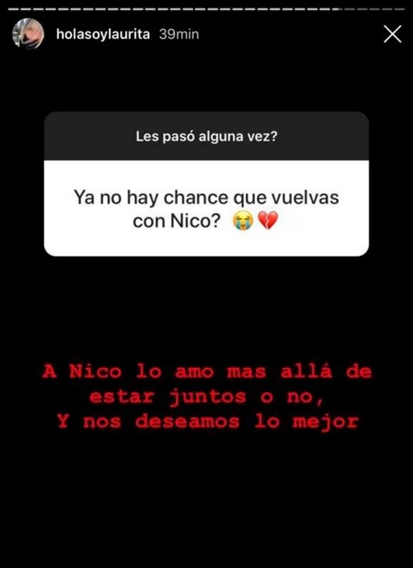 Laurita Fernández confirmó la semana pasada en "Los ángeles de la mañana" que se había separado de Nicolás Cabré. La actriz y bailarina contó que el distanciamiento se produjo mediante una videollamada, teniendo en cuenta que estaban imposibilitados de tener una charla cara a cara por el aislamiento social, preventivo y obligatorio que rige para mitigar el avance del coronavirus.