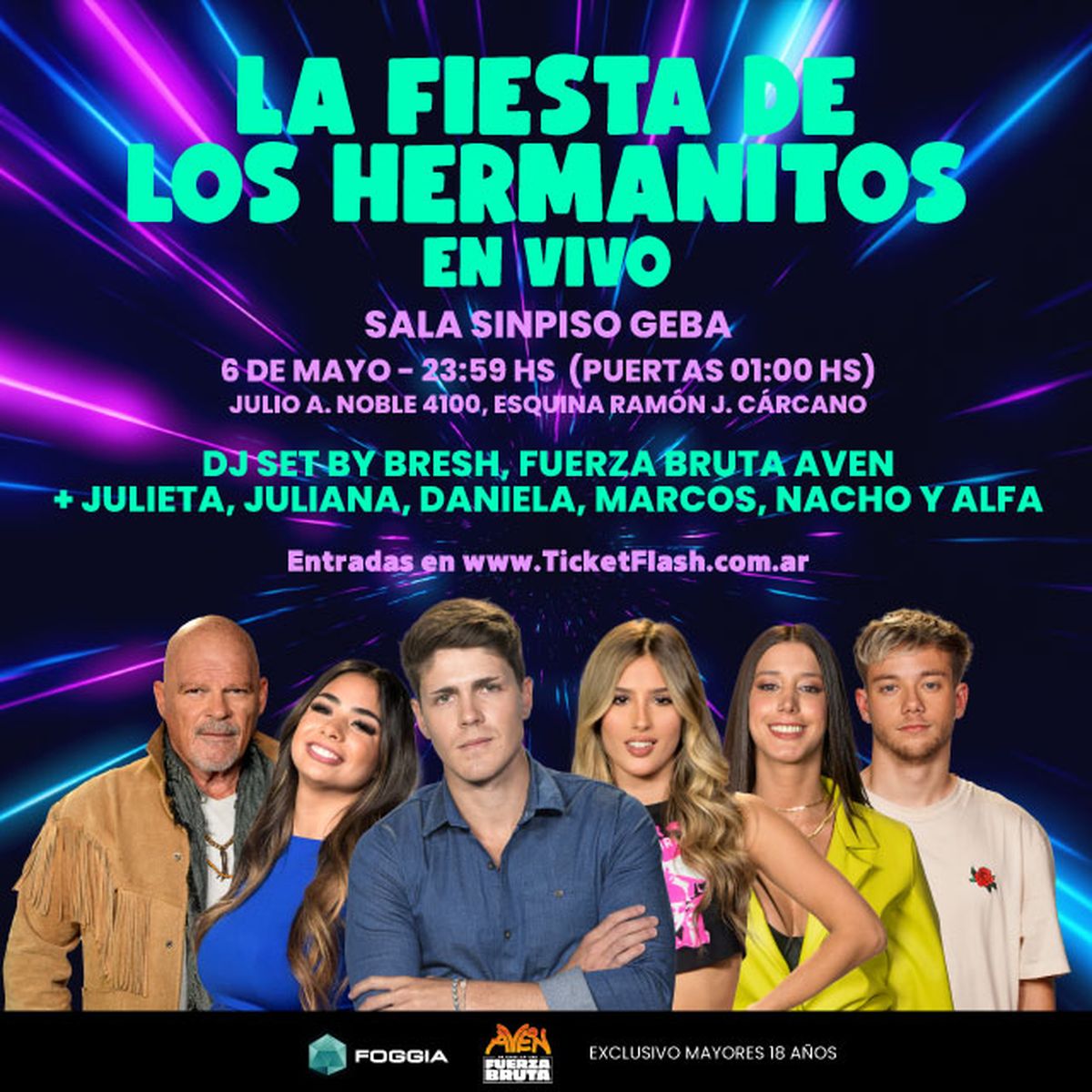 Lo cierto es que hace unas semanas había comenzado a promocionarse "La fiesta de los hermanitos, en vivo", con la presencia de los participantes más populares y queridos de Gran Hermano 2022, con entradas a $6800, para este fin de semana del 7 de mayo en GEBA. Pero ahora, por lo pronto habrá que seguir esperando.