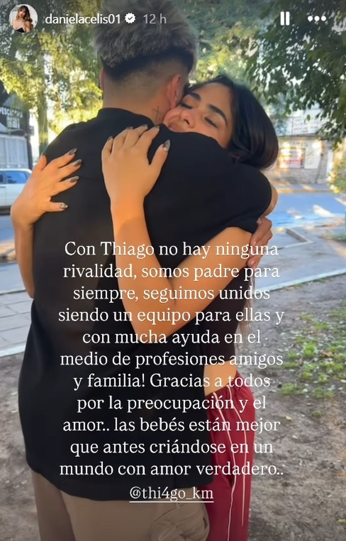 En sus historias de Instagram, Pestañela sorprendió al mostrar una imagen en la intimidad con Thiago abrazados en la calle tras separarse y explicó el momento que viven.