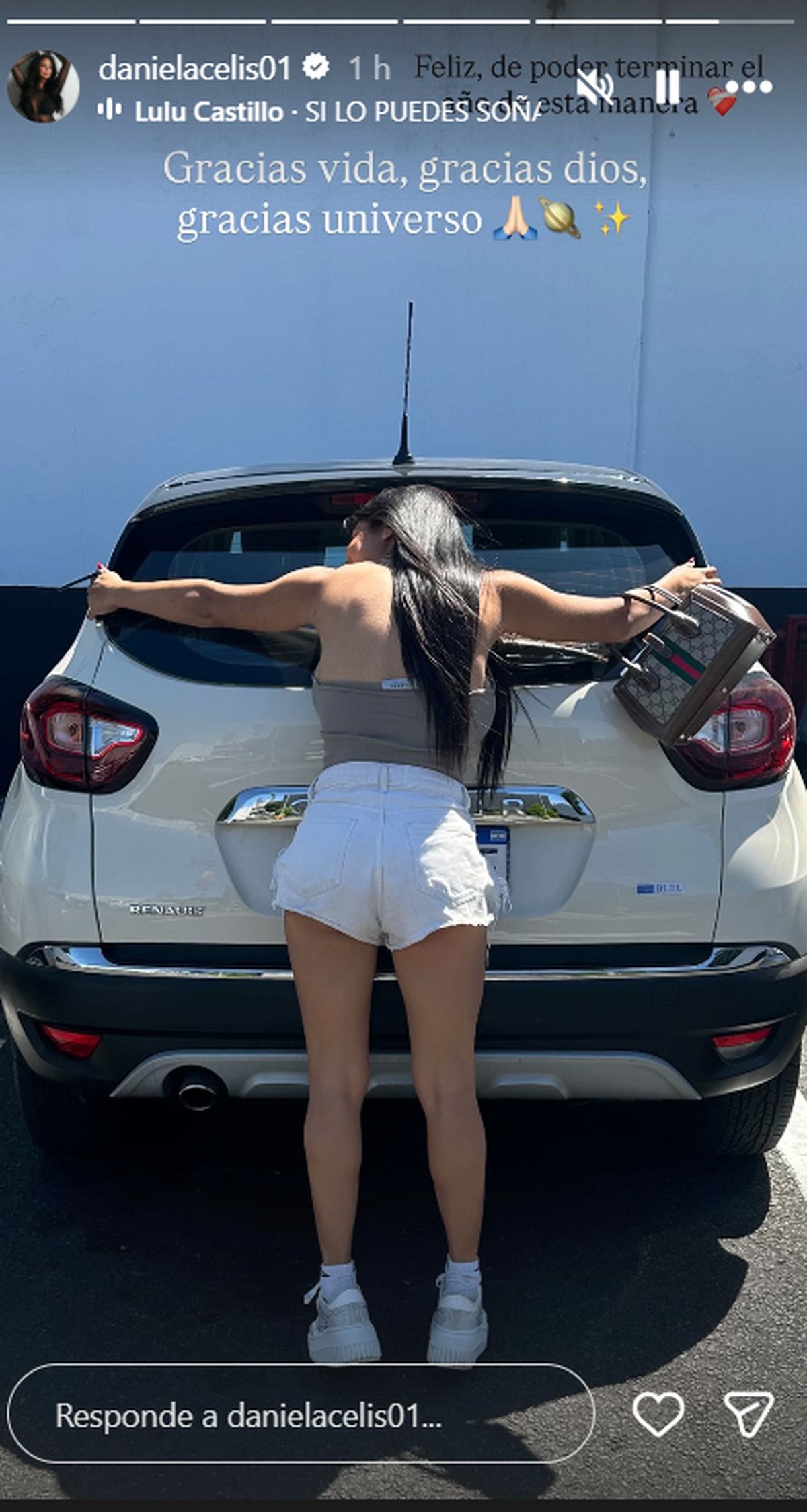 La felicidad continuó en una segunda publicación, en la que compartió una foto abrazando de espaldas a su nueva camioneta. "Gracias vida, gracias dios, gracias universo", expresó. Y agregó: "Feliz de poder terminar de esta manera".
