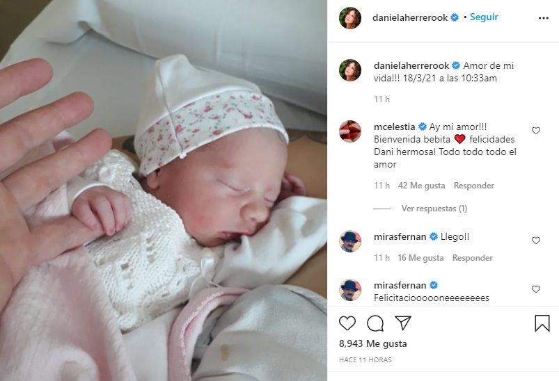 Desde Instagram, Daniela, de 35 años, compartió la primera imagen de su hija con mucha felicidad: "Amor de mi vida!!!", expresó.