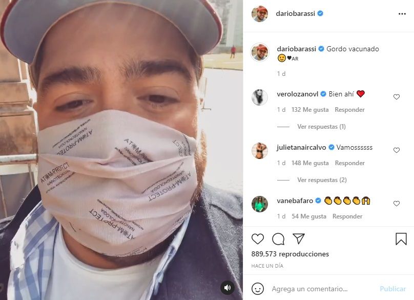 Barassi compartió su posteo con el título "gordo vacunado" y expresó su alivio tras recibir la primera dosis.