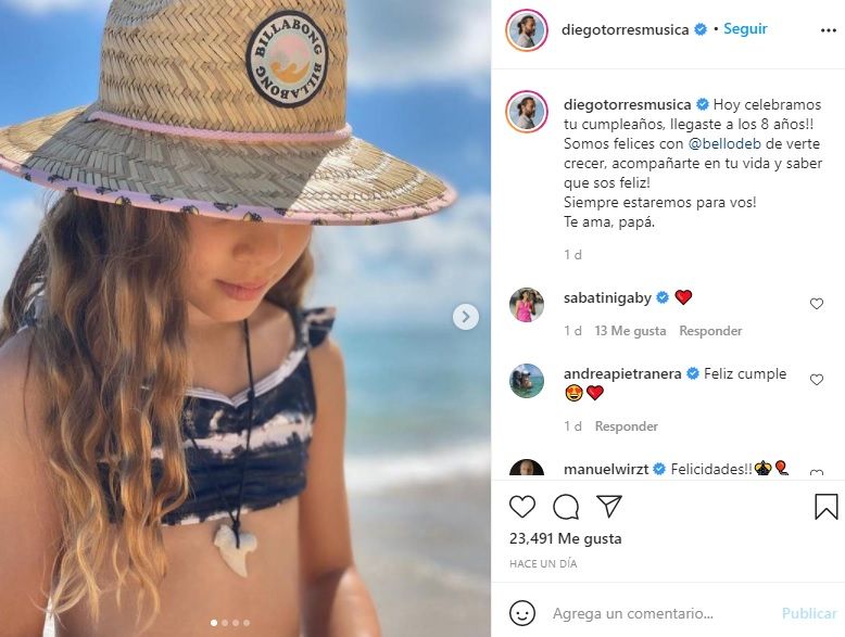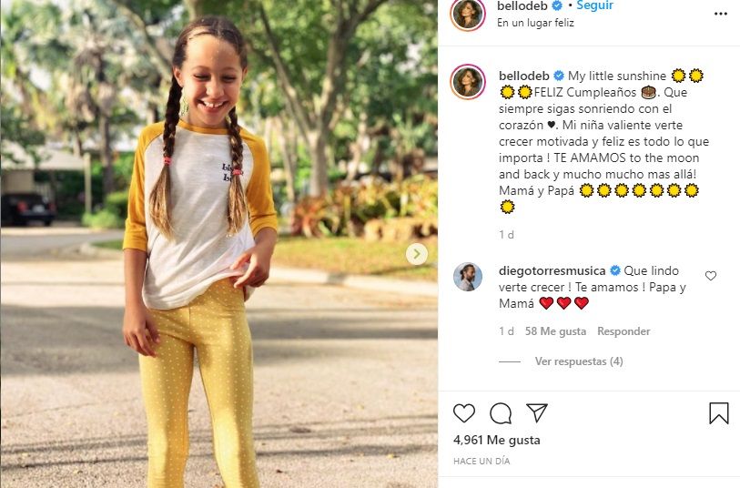 "Somos felices con @bellodeb de verte crecer, acompañarte en tu vida y saber que sos feliz! Siempre estaremos para vos! Te ama, papá", finalizó el artista.