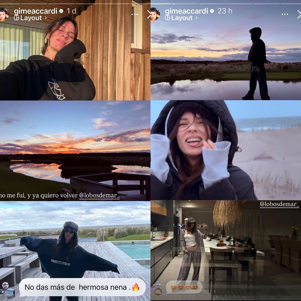 Pero en las últimas horas, los indicios dejaron de ser tan ambiguos. Fue la propia Gimena quien, sin decir una sola palabra, dejó ver una cercanía distinta con el cantante. A través de sus historias de Instagram, compartió escenas cotidianas: primero, desde el interior de un auto; luego, ya instalados en un complejo de Pinamar. Sin embargo, hubo un detalle que no pasó inadvertido: en una de las postales, detrás de ella, se podía ver a Seven Kayne, reconocible por su estilo. Para muchos, esa imagen funcionó como una especie de “blanqueo” implícito.