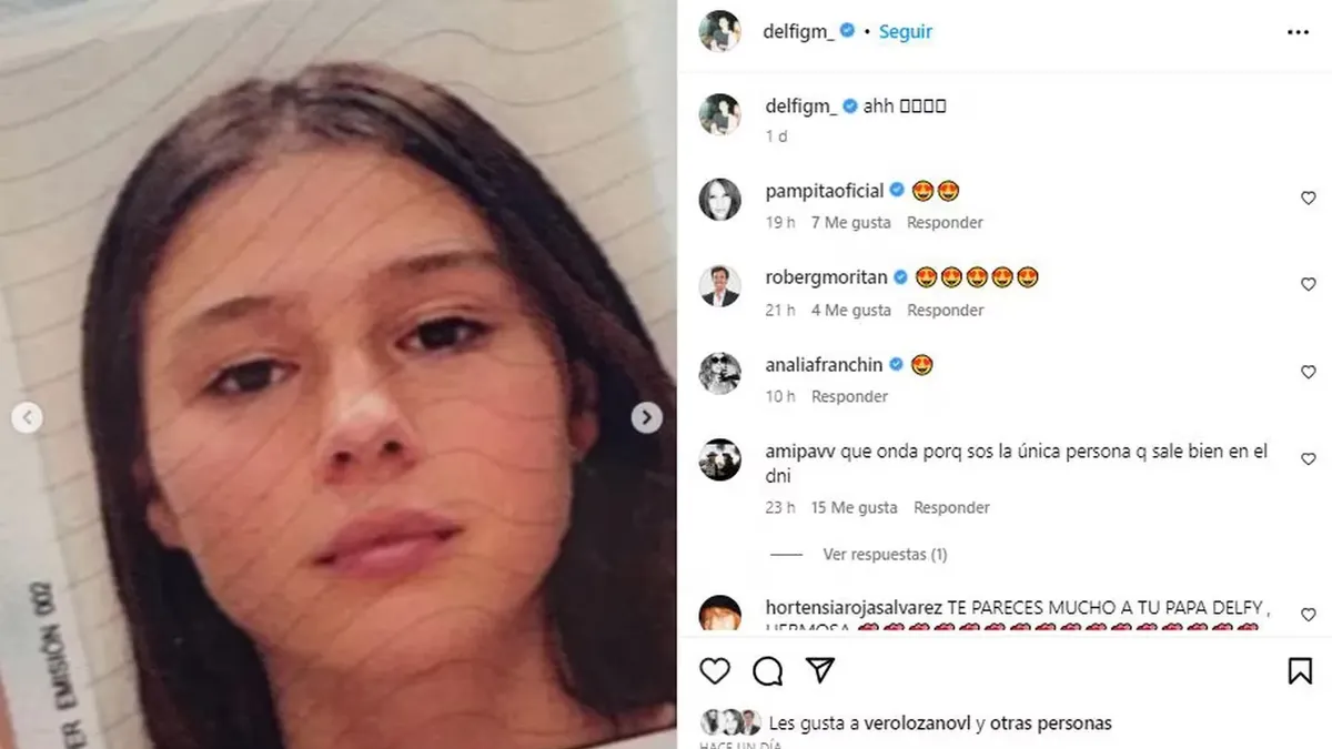“Hermosa”, “¿Es joda la del DNI?”, “¿Qué onda? Sos la única persona que sale bien en el DNI”, “Quién pudiera salir así de hermosa en el documento”, “Qué diosa”, fueron algunos de los comentarios que le dejaron a Delfina.