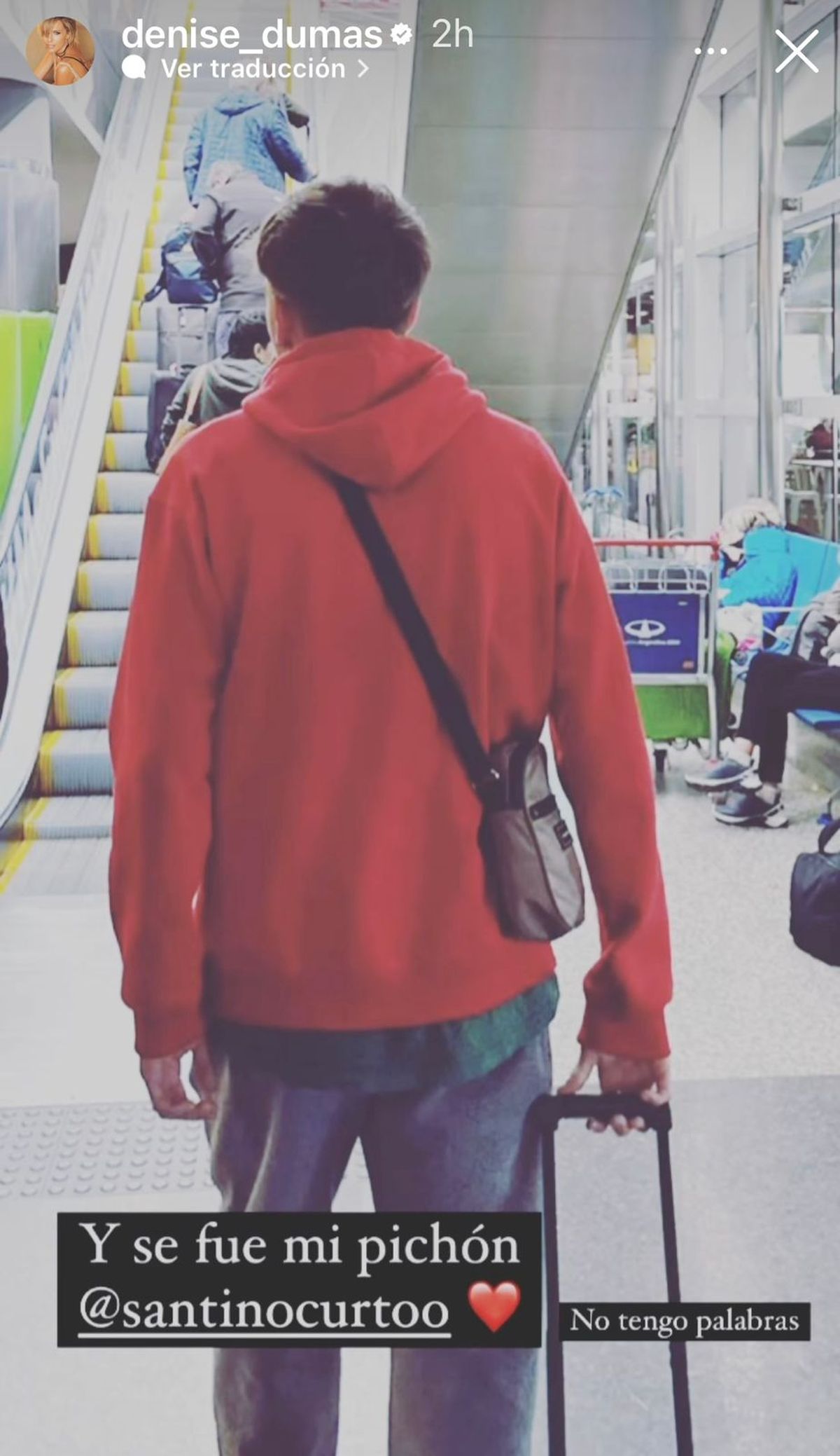 "Despedirte es una mezcla de orgullo, felicidad, miedo, vacío y miles de sentimientos más… Vas a volver lleno de anécdotas. Tan bueno y tan único, mi chiquito de mi alma. Allá van a tener la suerte de conocerte. Sos un privilegio en mi vida. A volar", completó Denise en la despedida virtual al mayor de sus hijos, fruto de su relación con el cantante Germán Barceló.